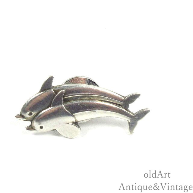 北欧 デンマーク製 ヴィンテージ GeorgJensen ジョージジェンセン イルカ ラペルピン ブローチ #129【N-24716】【中古】【送料無料】