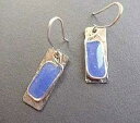 Bettina 手作り軽量ミディアムブルーツルニチニチソウ樹脂とアルミニウム長方形ドロップイヤリングビーズ Handmade Lightweight Medium Blue Periwinkle Resin and Aluminum Rectangle Drop Earrings Beads by Bettina