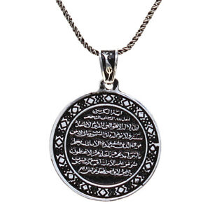 【送料無料】アクセサリー ネックレス ラウンドシルバークルアーンチェーンネックレスイスラムイスラムrotondo argento 925 ayatul kursi quran sura collana catena islamico musulmano