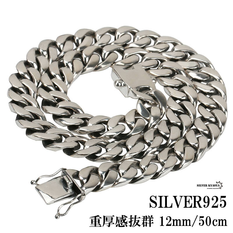 重厚 シルバー925 喜平ネックレス シルバー喜平チェーン 太め 幅12mm silver925 マイアミキューバンチェーン ネックレス 50cm 専用BOX付属