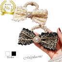 【MAX20%OFFクーポン 11/1〜2 23:59まで48H限定】【P5倍】【送料無料】ツイード黒 白 ヘアアクセ ヘアゴム リボン パール 大人 韓国 通勤 ママ スーツ フォーマル 上品 黒 ハーフアップ まとめ髪 大きめ ボリューム 結婚式 冬