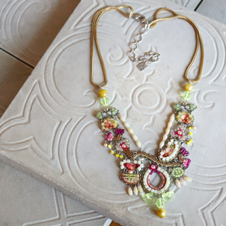 タグ:#Lemonade■BrandAyala Bar the artist舗道の割れ目からそっと眺くローズ色の小さな花さびた缶の上にふりそそぐ陽の光にわか雨のあとの水たまりに立つさざなみ---彼女を取り巻くすべては、独創的な芸術家でもある彼女の世界を膨らませるアヤラ・バーの宇宙はいつも緻密な世界の中にあり、彼女が作品に用いるシンプルな金属、ガラスのヴィクトリアン、鉱物石、水晶のラインストーンなどの素材が織り成す複雑なパターンは、アヤラ・バーの創造的な感性を、私たちに伝えてくれるのです。例えば「アールデコと中近東の出会い」というように、誰もがアヤラのスタイルを定義しようとする---けれども彼女のスタイルは、どのカテゴリーにも分類することはできません。なぜなら、アヤラのアクセサリーを身につけるすべての女性は、自分自身の輝きを見出して、自分のスタイルを創造することができるからなのです。Ayala Bar Collection新作【NEW】クラシックヒップラディアンスシグニチャーアヤラ・バー ネックレス クラシックコレクション Lemonade品 番ay02-c3545サイズネックレスの長さ約41cm(+アジャスター10cm)材 質ガラスビーズ、リボンコード、真鍮制 作イスラエル明るい色合いに遊び心あるパーツの組み合わせが魅力の、Lemonadeという名の通り、甘酸っぱい印象のシリーズ。淡い黄色系のビーズが揺れ、乳白色のパールとの組み合わせは、爽やかで清涼感があり、上品さと可愛らしさを感じるデザインのネックレスです。10cmのアジャスターで襟元にあわせて長さを調節できます。ゴールドのチェーンは、少しずつ落ち着いた色に変化します。【アヤラ・バー/クラシックコレクション】伝統的なフォルムを再現した、アヤラバーのクラッシクコレクション。19世紀末から20世紀初頭にかけて、王室のものであったジュエリーが一般庶民へ普及してゆく過程で開発されてきた、コスチュームジュエリーのアイデアがヒントになっています。ダイヤモンドもエメラルドも使っていないけれど、本物以上のゴージャスな輝きを表現できる・・・ やがてコスチュームジュエリーは、ハリウッドスターたちが身に付け、世界中で注目されるようになったのです。Ayala Bar Classic Collection, costume jewelry, Antique jewelry, Handmade, Designers Jewelry, アヤラバー アヤラバー, コスチュームジュエリー, デザイナーズジュエリー ヴィンテージ ヴィクトリアンスタイル アールデコ パーティー リサイタル 発表会 二次会