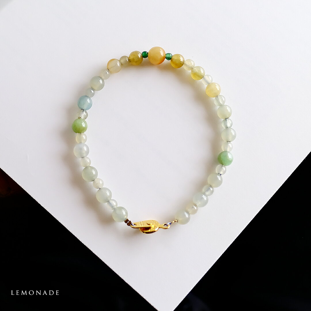 翡翠(ヒスイ) 丸玉ブレスレット『LEMONADE』(イエロー&グリーン&ホワイト翡翠 / 内周16cm)一点物 無着色 上質 ミャンマー産天然ひすい ジェダイト 硬玉 天然石 国石 5月誕生石 ビーズ ワイヤー【送料無料】