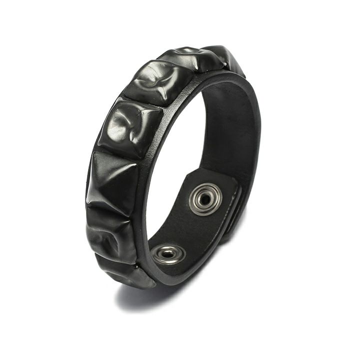 サイズガイド 修理・お直しについて 誕生石について ラッピングについて ご利用ガイド 詳細 手首周り 15 〜 18(cm) 幅 2(cm) パンクモチーフの代名詞として男女問わず世代を超えて愛されるスタッズを、手作業にて押しつぶし、スタンダードなスタッズと混成させた“JAM”(=押しつぶす)スタッズブレスレットです。 肉厚なレザーはアメリカ製を使用。 スタッズはパーツに施したブラックコーティングと共に使い込むほどに味を増し、経年変化による色落ちを楽しむことができます。 2つのスナップボタンにより着用サイズの調節が可能です。 シングルブレスレットの他、ダブルも展開しております。 >>ダブルスタッズブレスレット ※天然の革を使用している為、しわの入り方や、擦れ感など1点1点に個体差があります。 ご購入後、使用方法、使用頻度、環境や気候により、経年変化に個体差が表れます。 性別タイプ : メンズ・レディース カテゴリー : ブレスレット / バングル / メンズのブレスレット / メンズのバングル / レディースのブレスレット / レディースのバングル / ペアブレスレット モチーフ : レザー・革 素材:カウレザー(牛革), メタル(合金) カラー・仕上げ:ブラック <ご予約・受注商品についてのご注意> ■納期について 商品が入荷次第、順次発送させて頂きます。 工場の生産の都合上、納期が変更になる場合がございます。発送日の前後については予めご了承ください。 ■お届け希望日・時間指定 入荷次第、順次発送させて頂いております。システムの都合上、《日時指定》もお選び頂けますが ご指定日のお届けは出来かねます。時間指定のみの対応させて頂いております。 予め了承下さいませ。 ■通常商品の同時購入 ご予約・受注商品と通常商品を一緒にご注文頂いた場合、全ての商品が揃い次第、発送させて頂いております。別々の発送をご希望される場合は、お手数ですが、ご予約・受注商品と分けてご注文頂ますようお願い致します。 ■お支払いにつきまして クレジット決済・楽天バック決済をご利用になった場合でも、当店ではご注文時に決済をするような事は一切致しません。商品発送後に決済手続きを致しますので、ご安心してお買い物をお楽しみ下さいませ。 ■キャンセル・返品について ご予約・受注後のキャンセル・変更は、お受け致しかねます。予めご了承下さいませ。 今後もお客様が快く当店をご利用頂けますよう、より一層の努力を続けて参ります。 深くご理解を賜りますとともに、今後とも当店をご愛顧いただけますようどうぞよろしくお願い申し上げます。レザー ブレスレット シングル スタッズJAM HOME MADE ジャムホームメイド COLORカラー DETAILディテール