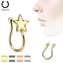 スター ノンホールピアス フェイクリングピアス ノンホール フープピアス風 星 シルバー ゴールド ピンクゴールド ブラック 金色 黒色 銀色 ノーズクリップ フェイク鼻ピアス ノーズクリップ 耳たぶ 軟骨 イヤーカフ レディース イヤリング 鼻 耳 ノーホール