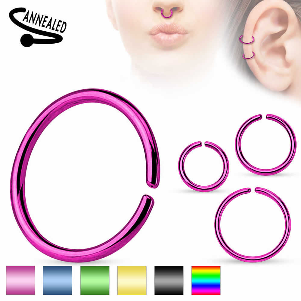 D型カラフル サージカルステンレス316L シームレスリング 16ゲージ 16G 鼻ピアス 軟骨ピアス リング型 ヘリックス トラガス メンズ レディース ボディピアス ブラック 黒 ブルー 青 ゴールド 金 グリーン 緑 レインボー 虹 パープル 紫 ニップル セプタム 乳首 セグメント