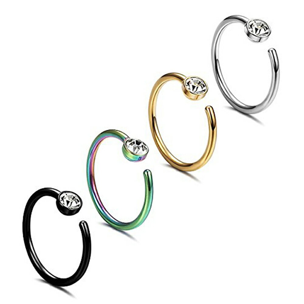 サージカルステンレス316L製のクリスタルをセットした20ゲージのノーズリングにブラックとゴールドとレインボーとステンレスカラーのカラーから選べる鼻ピアス。シンプル綺麗なノーズリング型ボディピアスは、鼻のピアスとしてはもちろん、トラガスやヘリックスにも使える。メンズでもレディースでも使えるおしゃれでシンプル綺麗なボディーピアスはプレゼントやペアルックにも。どんなスタイルにもマッチしてくれるボディーピアスです。 スペック20ゲージ(0.8mm)内径:約8mmジュエルサイズ(台座の直径):2.5mm素材サージカルステンレス316L備考・表示は1ヶの価格です。・写真はイメージです。お客様のモニターにより商品の色やイメージが異なる場合があります。・スペックサイズは目安としての参考値です。多少誤差がある場合がございますので予めご了承ください。