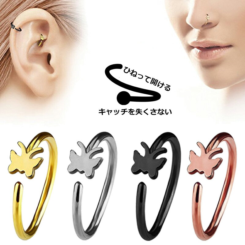 [ 18G ボディピアス] SUS316L バタフライ シームレスリング ノーズリング 鼻ピアス 18ゲージ サージカルステンレス316L ボディーピアス メンズ レディース リング型 ピンクゴールド ブラック 黒色 金色 ゴールド シルバー 銀色 蝶 チョウチョウ アゲハ プレゼント