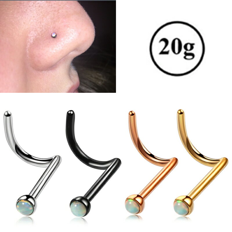 [天然石 20G 鼻ピアス ボディピアス ] オパール ノーズスクリュー20ゲージ ボディーピアス サージカルステンレス316L メンズ レディース ノストリル ツイスト カーブ ハナピ ブラック ゴールド ピンクゴールド シルバー プレゼント ギフト ノーズスクリュウ ノーズピアス 女