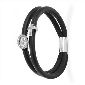 【送料無料】ジュエリー・アクセサリー ブラックレザーブレスレットアメンチャームクロスマドンナジルコナティシルバーbracciale in pelle nero amen crmi02b charm croce e madonna zirconati argento