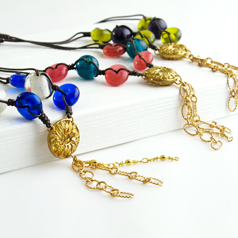 【オリエンタル 調節 ネックレス】とんぼ玉 ネックレス ガラス レディース 癒しグッズ 女性 ガラス細工 アジア ペンダント