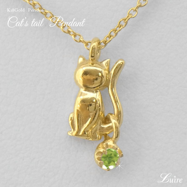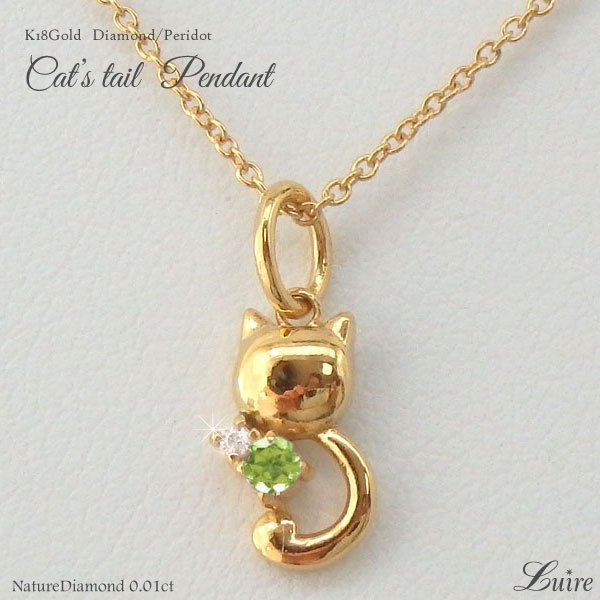 18k k18ゴールド ネコ 猫 ダイヤモンド ペリドット ネックレス ペンダント k18 誕生石 誕生日 プレゼント ギフト クリスマス
