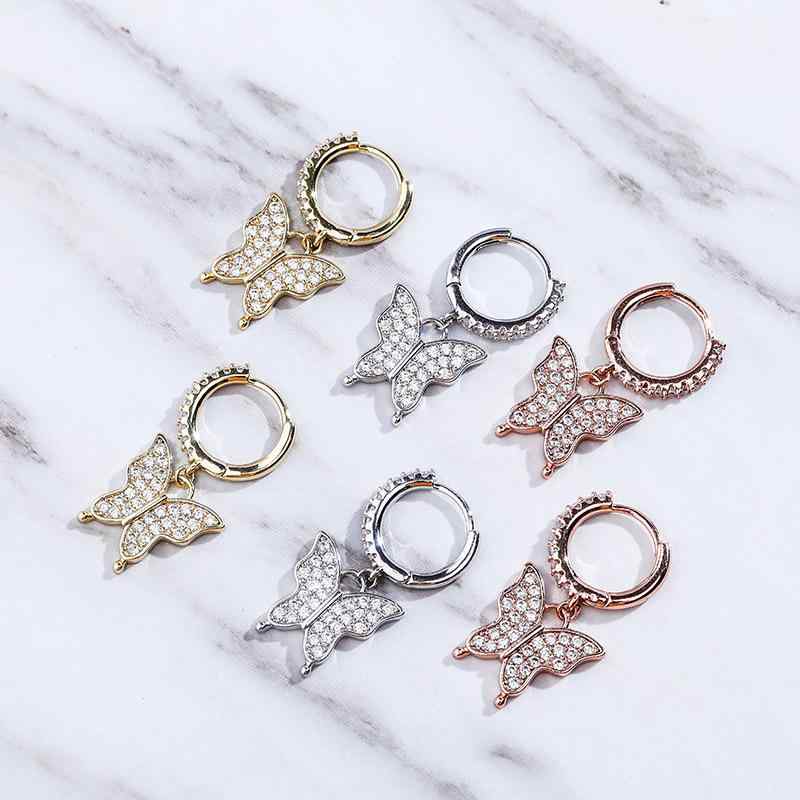 ピアス レディース 蝶 バタフライ ジルコニア ヒップホップ ストリート系 シンプル ゴールド シルバー ピンクゴールド アクセサリー ジュエリー カジュアル きれいめ おしゃれ