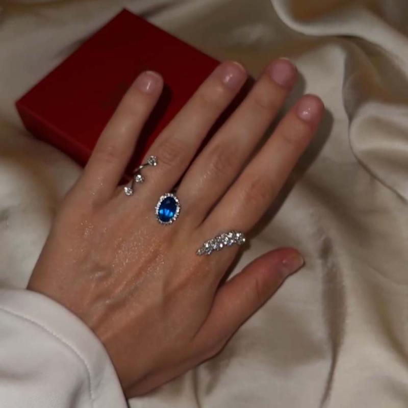 指輪 レディース アクセサリー ラインストーン ジルコニア 幾何学 重ね付け ブルー シルバー ゴールド オープンリング フリーサイズ 電気メッキ加工 通勤 オフィス 普段使い 秋冬 高級感 かわいい おしゃれ 華やか