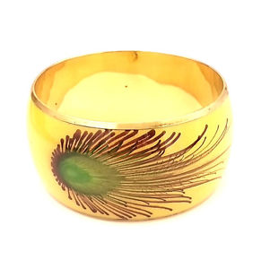 【送料無料】イタリアン ブレスレット ピーコックブレスレットコーティングnuovo bigiotteria piuma di pavone bracciale in metallo con rivestimento in resina giallo
