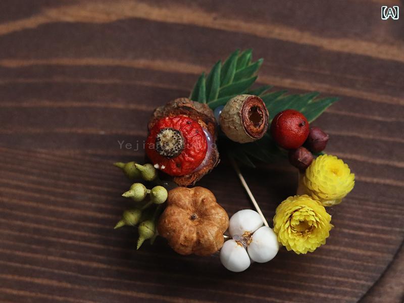 ブローチ 果実モチーフ 森ガール風 ナチュラル ハンドメイド 結婚式 ウェディング コサージュ 卒業式 記念品 プレゼント ローズヒップ どんぐり ブライズメイド アッシャー