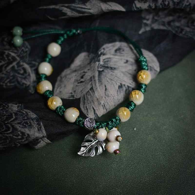 ブレスレット おしゃれ レトロ レディース アクセサリージュエリーローズヒップ セラミック 織り ブレスレット フォレスト