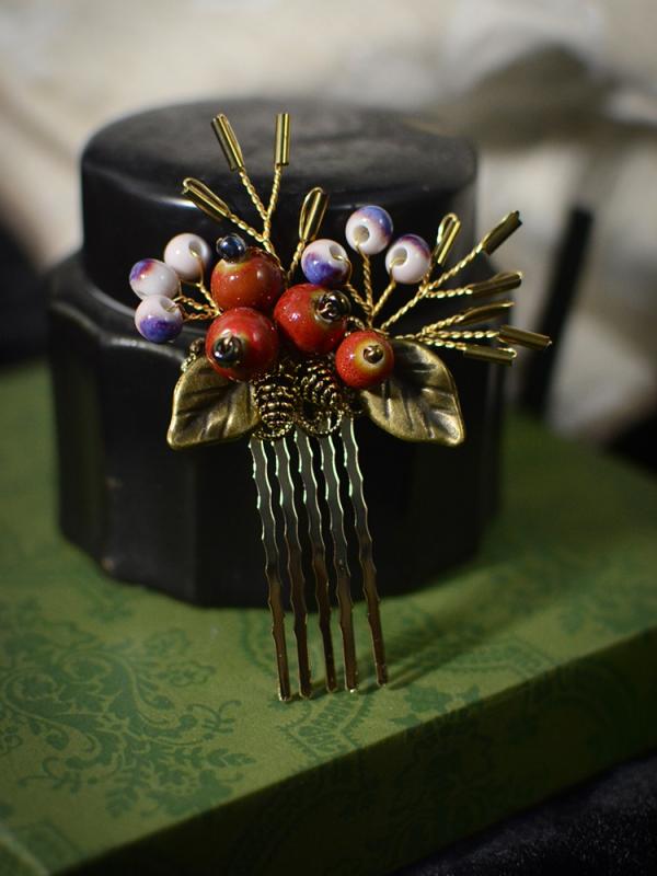 レディース ヘアアクセサリー ローズヒップ レッド 正月 ヘアコーム セラミック 織り 森林 チャイナ風 チャイナドレス 小さめ 櫛 髪飾り