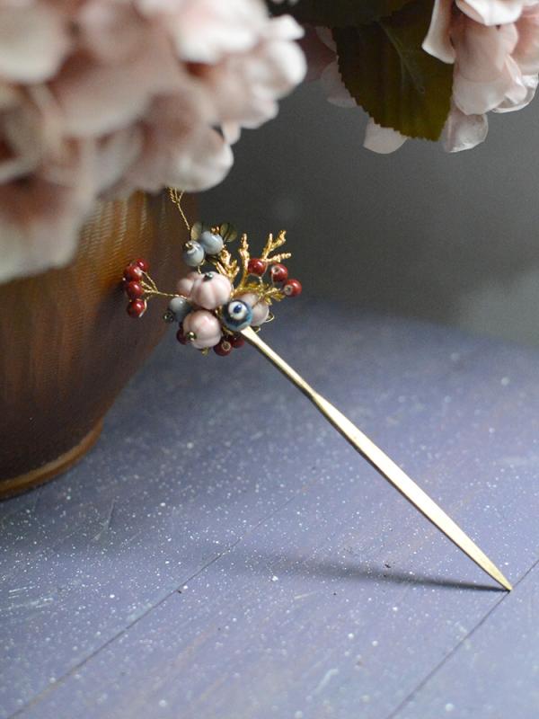 かんざし おしゃれ 髪飾り レディース アクセサリー ジュエリー ローズヒップ フォレスト レトロ セラミック ビーズ ヘアピン チャイナ風 漢服 宮殿風 衣装