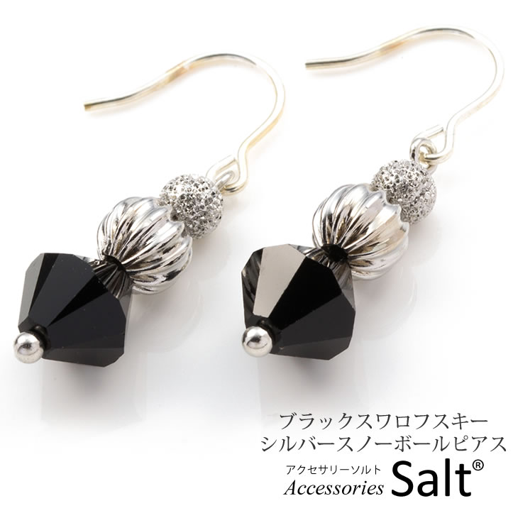 ピアス ブラック スワロフスキー シルバー スノーボール レディース 黒 シルバー925 silver925 小ぶり 小さめ ぶら下がり シリコンキャッチ付き 両耳用 普段使い 自分用 女性 ギフト プレゼント 誕生日 カジュアル シャープ オフィス【メール便 送料無料】【あす楽】