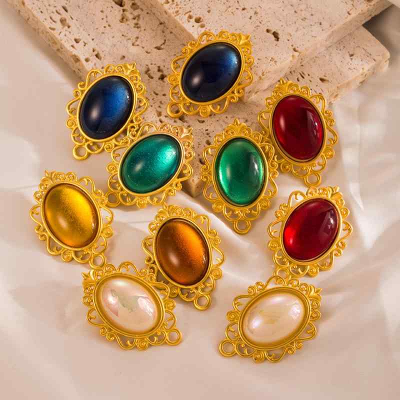 ・カテゴリ: ピアス・イヤリング・対象: レディース・スタイル: 欧米・テイスト: レトロヴィンテージ・素材: 合金、樹脂・デザイン: 幾何学模様、楕円・カラー展開: 白パール、グリーン、レッド、ブルー