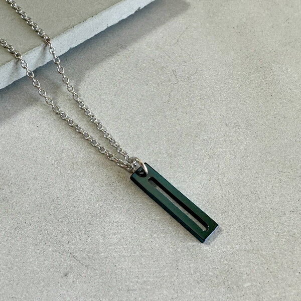 シンプル ブラック バー スティック ネックレス (チェーン付き) ペンダント メンズネックレス シルバー 925 黒 スリット 棒 細長 さりげない 大人 かっこいい きれいめ すっきり メンズ 男性 彼氏 夫 旦那 誕生日 記念日 プレゼント 人気 おしゃれ