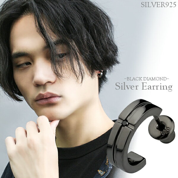 Royal Stag ブラックダイヤモンド クロス スリット シルバーピアス メンズ ピアス ハーフフープ シルバー925 ブラックダイヤ ダイヤモンド メンズピアス 男性用ピアス プレゼント 人気 おしゃれ かっこいい 黒