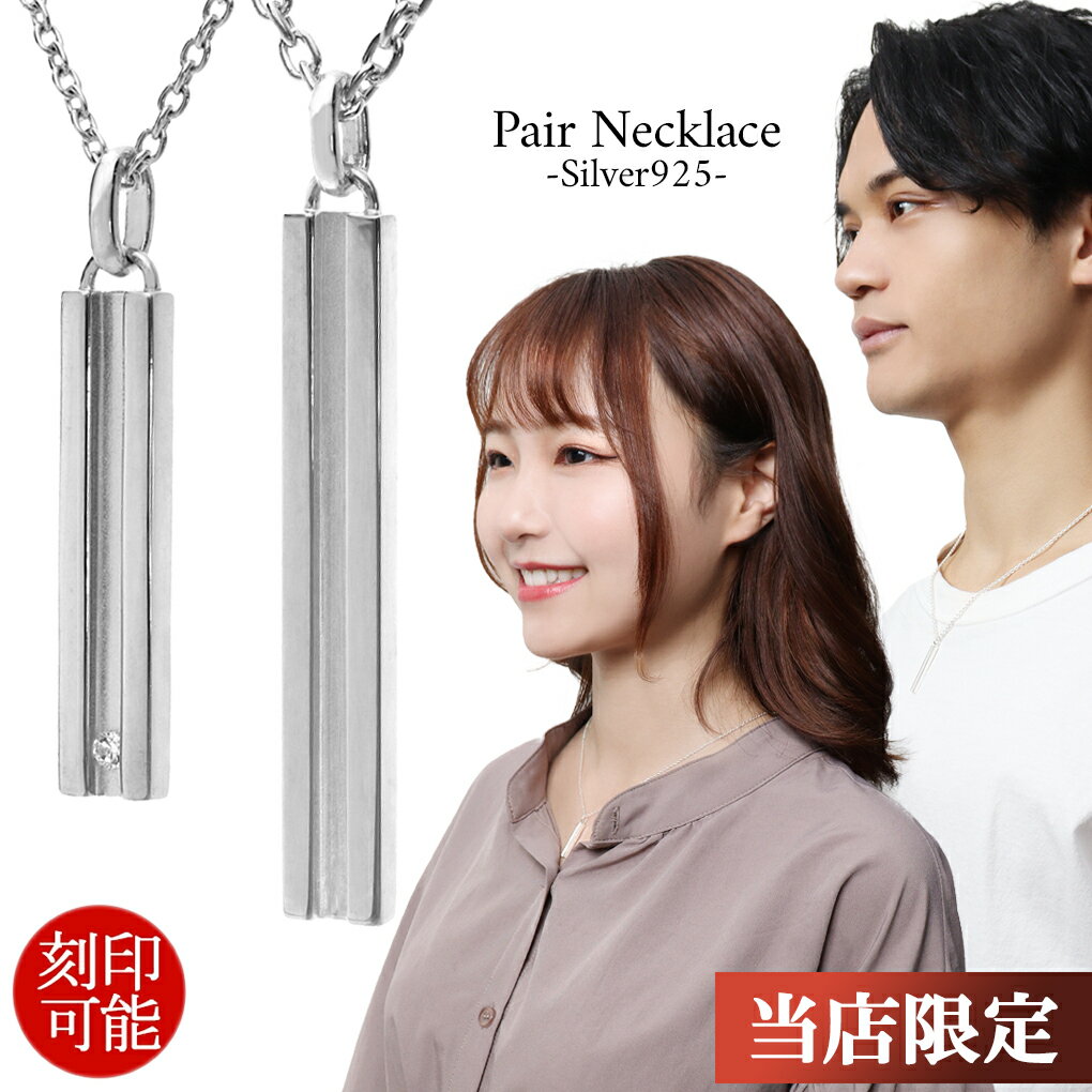 ペアネックレス シンプル 刻印可 大人 人気 シルバー925 上品 おそろい プレート 棒 バー ブリッジ ペアアクセサリー ネックレス ペンダント 銀 キュービックジルコニア きらきら メンズ レディース 彼氏 彼女 旦那 妻 プレゼント 日常 普段使い おしゃれ スリット シンプル
