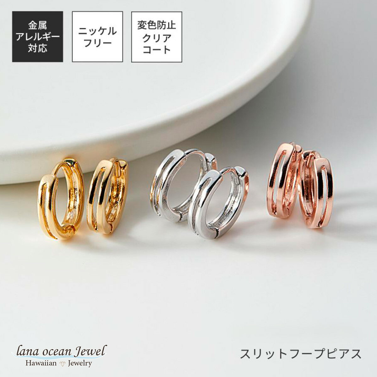 lana ocean jewel フープピアス シンプル スリット ワンタッチ 中折れ 変色防止加工 ニッケルフリー 金属アレルギー対応 レディース メンズ 送料無料