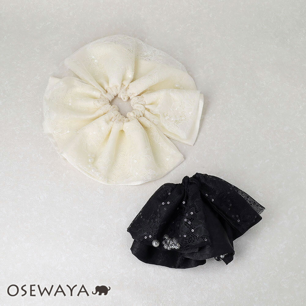 【11/20限定20%OFFクーポン】シュシュ slit chouchou フラワー レース スパンコール ボリューム ビッグ | OSEWAYA ヘアアクセサリー ヘアアクセ レディース 女性 大人 プレゼント ギフト 結婚式 カジュアル おしゃれ オシャレ かわいい 可愛い