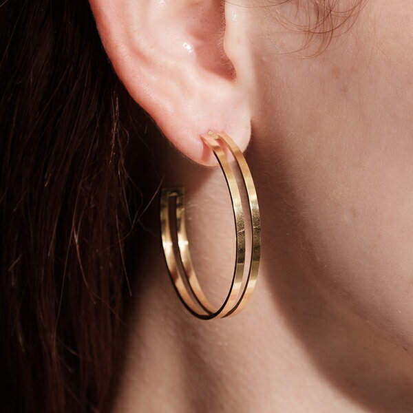 洗練されたデザインと実用性を兼ね備えた lana ocean jewelのミニフープピアス 11.5mm ■ 日常の装いを格上げするアクセサリー シンプルでどんなコーディネートにも馴染むフープピアスです。 くり抜いた部分から肌がちらっと見えるところがポイント。 窮屈感を感じさせず、上品な印象を与えてくれます。 クリアコート仕上げで変色防止加工がほどこされ、コーティングが長持ちしやすくなっています。 金属アレルギーの主な原因の一つであるニッケルをほぼ含まずに、光沢感、耐食性を併せ持つニッケルフリーコーティング仕上げをしています。 ノンニッケル仕上げ、ノーニッケル仕上げとも呼ばれています。 金属アレルギーをお持ちの方でも比較的安心してご使用いただけます。 (全ての方に金属アレルギーが出ない事を保障する物ではございません) ※変色防止加工、基準は当社比による。 ■ 商品詳細 素材 :真鍮製 ニッケルフリー 形状 :フープ 販売形態:両耳 サイズ 縦:約11.5mm 横:約12.0mm 正面から見た時の幅:約2.5mm 厚み:約1.8mm 内径:約8.0mm ポスト長さ:約6.0mm ポスト太さ:約0.8mm ■ ご購入前に ・商品画像は、光の当たり具合やパソコンなどの閲覧環境によって、実際の色と多少異なる場合があります。 サイズ表記は目安です。多少の誤差が生じる場合がございます。 ・金属アレルギーをお持ちの方でも、必ずしもアレルギー反応が出ないとは限りません。 ご心配な方は、皮膚科医にご相談ください。