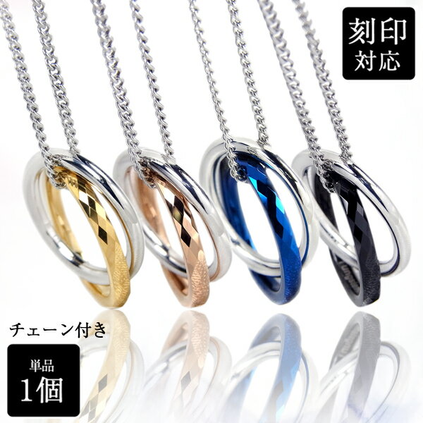 タングステン ステンレス ダブル リング 2連 トップ ネックレス ペア 刻印 可能 シルバー ブルーブラック ピンクゴールド 送料無料 ペンダントトップ アレルギーに優しい 指輪fourm クリスマス 母の日 レディース メンズ 男性 女性 ラッピング 包装 袋 誕生日