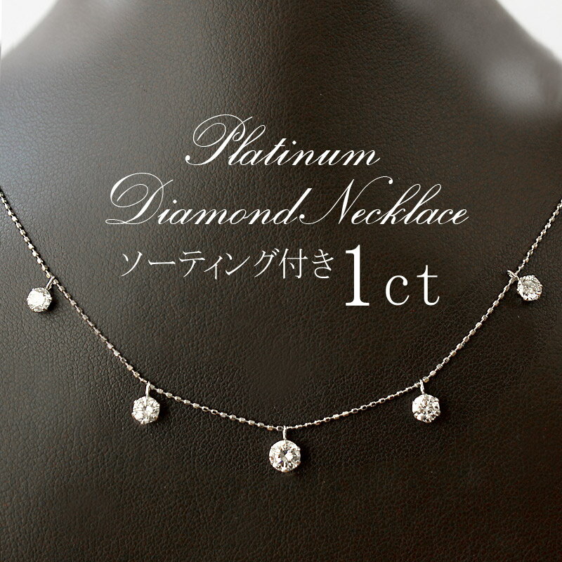 【ブラックフライデークーポン有】プラチナ ダイヤモンド 1カラット ステーション ネックレス Pt900 Pt850 Pt Dカラー Eカラー Fカラー SIクラス VeryGood Goodカット 5石 1.0ct 1キャラ グレード ソーティング 鑑定付 アジャスター付き チェン長さ調節可能