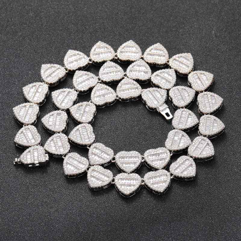 ネックレス 男女兼用 愛のハートモチーフ 銅製 ジルコニア チョーカー ヒップホップ スタイル ペンダント ファッション アクセサリー 51cm 60cm ゴールド シルバー