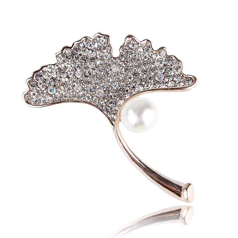 ブローチ レディース 韓国風 パール 銀杏 葉っぱ ラインストーン ラペルピン ピンバッジ スーツ ジャケット フォーマル オフィス アクセサリー 結婚式 パーティー エレガント 上品 かわいい ギフト プレゼント 合金製