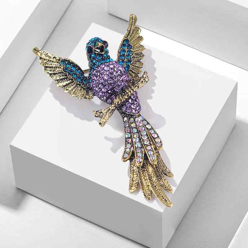 ブローチ 男女兼用 レトロ クラシック 欧米風 ワシ イーグル 動物モチーフ カラフル 輝くラインストーン 合金 電気メッキ加工 コート ジャケット アウター ファッション小物 ピン アクセサリー