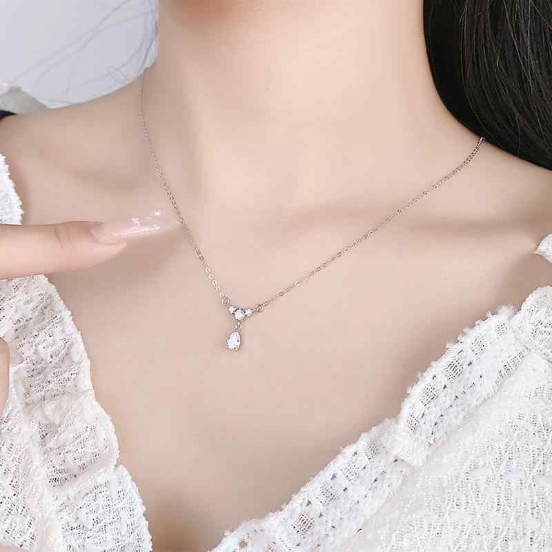 ネックレス レディース S925シルバー ジルコニア しずく型 ペンダント 白金色 鎖骨チェーン エレガント ファッション 通勤 デート パーティー