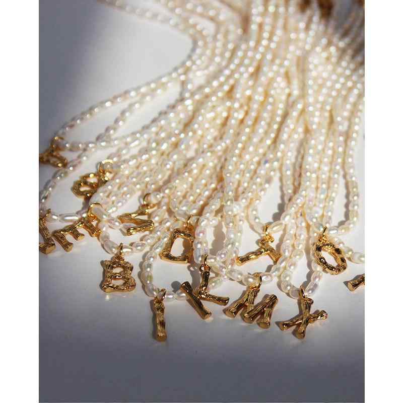 ネックレス レディース 淡水パール 幾何学模様 アルファベット ペンダント バロック レトロ アート 丸珠チェーン 真鍮 アクセサリー