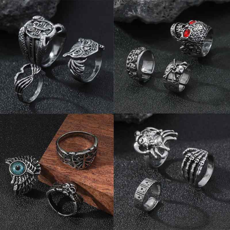 リング メンズ パンク ロック スカル ドクロ レトロ ヴィンテージ ダメージ加工 ヒップホップ ストリート ワイルド 存在感 指輪 セット 合金 アクセサリー