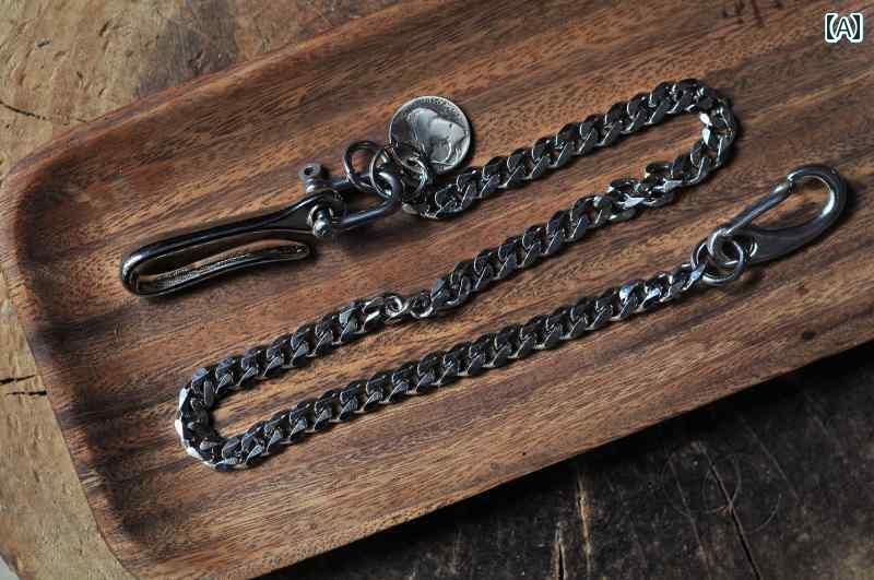 キーホルダー アクセサリー メタル アメリカン レトロ アミ カーキ オートバイ ストリート シルバー メタル ステンレス ウェルス チェーン パンツ ウエスト キー