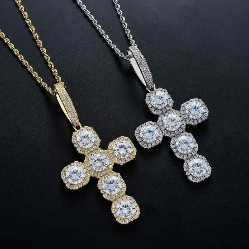 ネックレス メンズ 男性用 87mm クロス ジルコニア ペンダント 喜平チェーン ステンレス 麻の葉 幾何学 ヒップホップ ストリート ラッキーアイテム