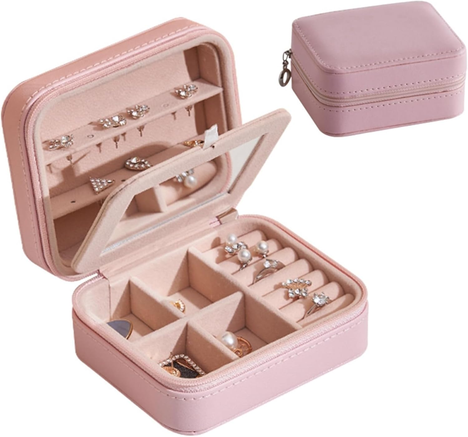 ジュエリーボックス アクセサリーケース 鏡付き ジュエリー収納 宝石箱 ミニ 携帯用 おしゃれ コンパクト 持ち運び 小物入れ ピアス ネックレス リング 指輪置き 女の子 女性用 ピンク