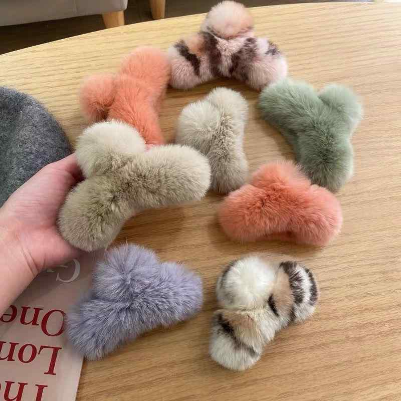 ヘアクリップ レディース 韓国風 秋冬 ふわふわ ラビットファー調 フェイクファー 上品 かわいい バンスクリップ シャーククリップ 後頭部 まとめ髪 髪留め 髪飾り