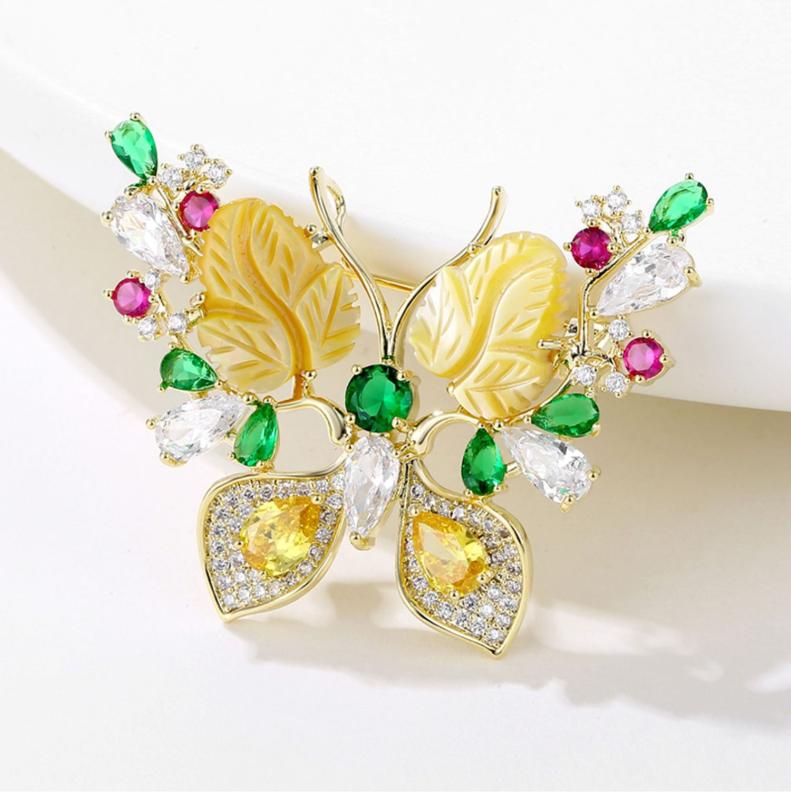 ブローチ レディース 天然シェル 蝶々 バタフライ カラフル ミックスカラー ジルコニア 高級感 エレガント 上品 ゴージャス 韓国スタイル コート アウター 装飾