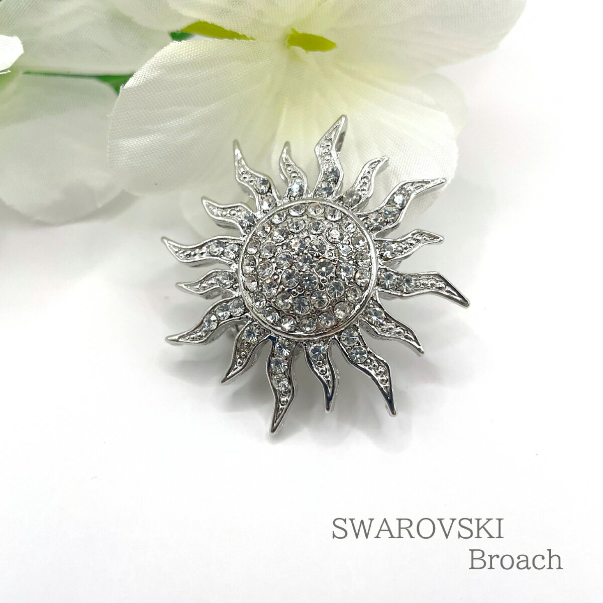 スワロフスキー ブローチ ソレイユ シルバー 4.5cmx4.7cm アクセサリー レディース 母の日 プレゼント パーティー 結婚式 二次会 入学式 入園式 卒園式 卒業式 お呼ばれ 誕生日 フォーマル カジュアル【メール便送料無料】