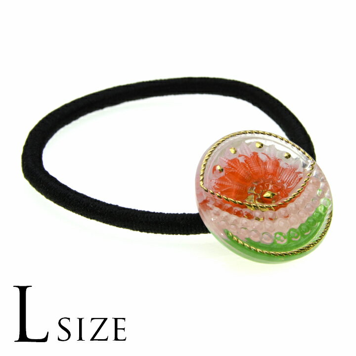 【宅急便コンパクトにて発送】チェコ 伝統工芸品 ガラスボタン ヘアゴム L ソレイユ グリーンレッド