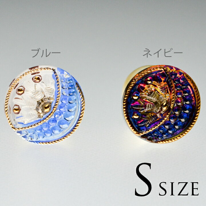 【宅急便コンパクトにて発送】チェコ 伝統工芸品 ガラスボタン ピアス S ソレイユ ブルー/ネイビー パールキャッチ