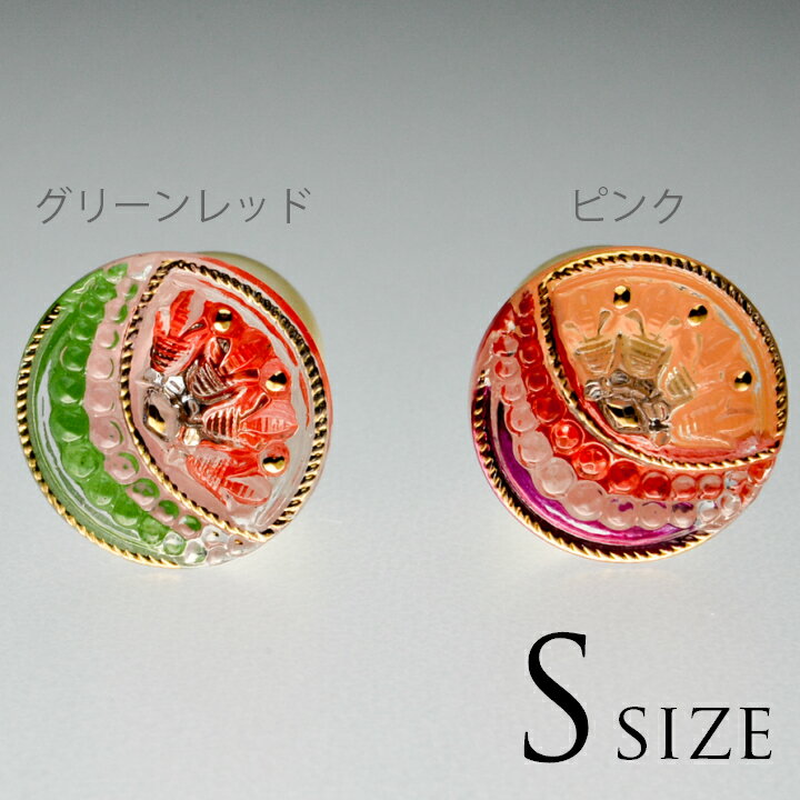 【宅急便コンパクトにて発送】チェコ 伝統工芸品 ガラスボタン ピアス S ソレイユ グリーンレッド/ピンク パールキャッチ