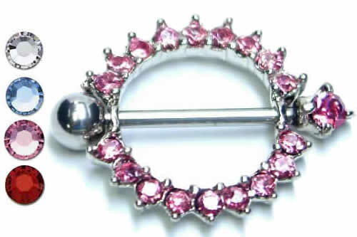 SOLEIL(ソレイユ)とはフランス語で太陽、ひまわりを意味するニップルピアスです。その名の通り、放射状にジュエルをセットしたキラキラのニップルピアスがセクシー!バーベルの片側にもジュエルをセットすることで、デザインのトータルバランスを崩さず、完成度の高いボディジュエリーは大人のアナタを満足させる。カラーバリエーションも豊富で、手頃な価格はボディピアスマニアにはうれしい。乳首を取り囲むように配置されたキラキラのジュエルにカレの視線クギヅケ!最近では、SMフェチ系の方だけでなく、ファッション感覚で広く女性に愛用されているニップルピアスは、オシャレなアナタにピッタリ!ランジェリー感覚で楽しめるニップルピアス。プレゼントにもオススメです。 スペックバーベル:14ゲージ(1.6mm)内径:16mmボールサイズ(直径):5mmシールドサイズ(内径):13mmシールドサイズ(外径):20mm素材バーベル:サージカルステンレス316Lシールド:真鍮備考表示は1ヶの価格です。写真はイメージです。実際の商品とは多少異なる場合がございます。ハンドメイドの為多少サイズは異なります。