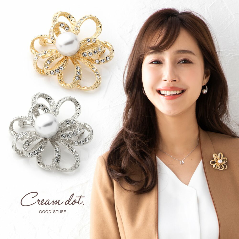 大粒パールを一粒飾ったフラワーモチーフのブローチ。煌くビジューを埋め込んだラインが胸元を品よく彩ります。華やかになりすぎずに大人っぽくスタイリングできるアイテム◎[関連ワード]卒業式 入学式 卒園式 入園式 卒入式 卒入園式 卒入学式 フォーマル ママ ママスーツ スーツ 母 妻 20代 30代 40代 50代 フェミニン 華やか 発表会 七五三 参観日 披露宴 謝恩会 結婚式 二次会 同窓会 パーティー お呼ばれ 贈り物 春 夏 秋 冬ブランド名:Cream dot.(クリームドット)【ゆうパケット送料無料】煌めくビジュー×パールの上品フラワーブローチ サイズ モチーフの大きさ 3.8cm×4.8cm×1.8cm(ピン:3.5cm) 重さ 14.3g 素材 合金 フェイクパール キュービックジルコニア(人工石) 注意点 ■モニターの都合上、掲載写真と実際の色が異なる場合がございます。
